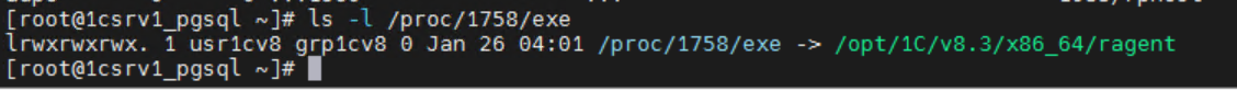 ls -l /proc/1758/exeПримерный результат выполнения команды: