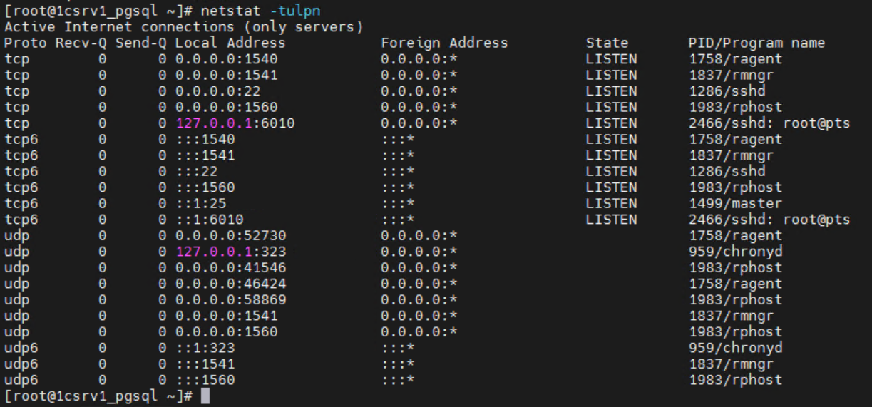 Из вывода видно, что 1540-й порт был открыт ragent с PID’ом 1758. Правильно, это же сервер 1С. Проверить это можно через /proc: