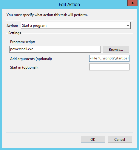 -File ″C:\Scripts\start.ps1″Также в поле аргументы можно указать: