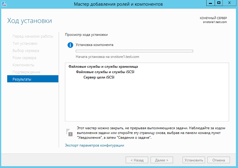 Дожидаемся установки компонента роли.