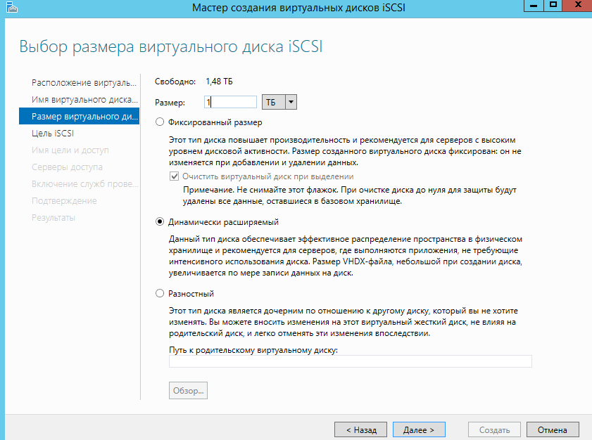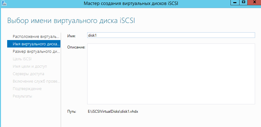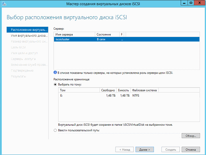 Запускаем мастер создания ISCSI диска.
