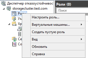Возвращаемся в консоль управления кластером, и добавляем новую роль кластера.