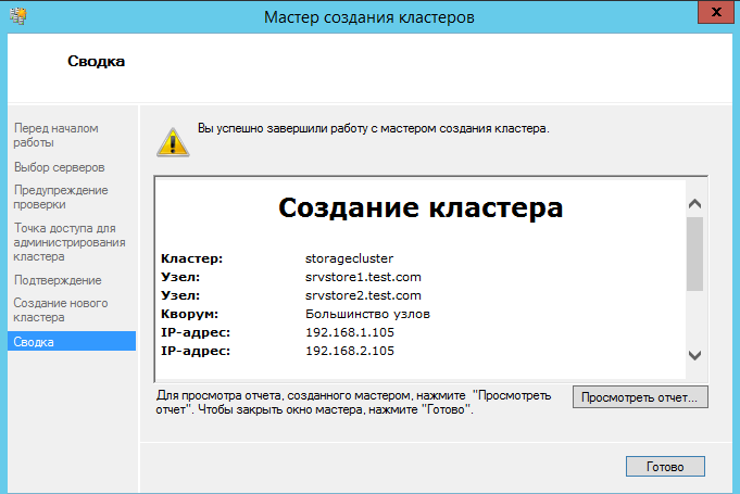 Дождитесь окончания работы мастера. Если мастер не находит узлы кластера, проверьте настройки брандмауэра или сети.