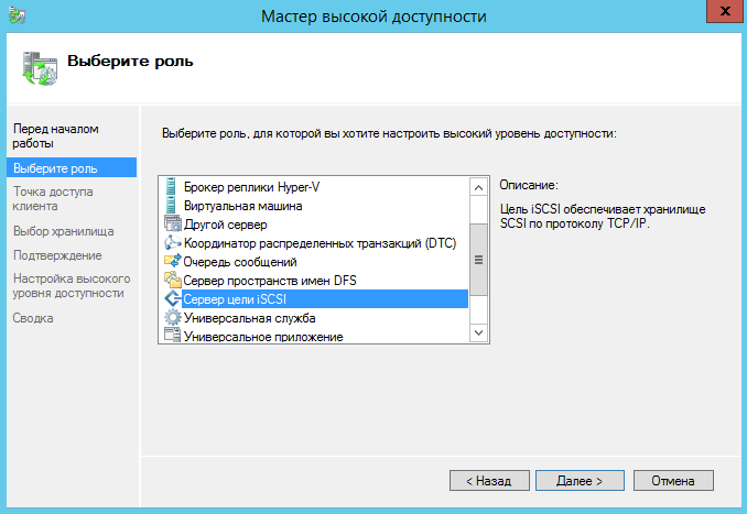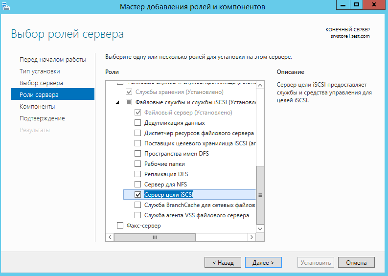 Выбираем роль ISCSI сервера