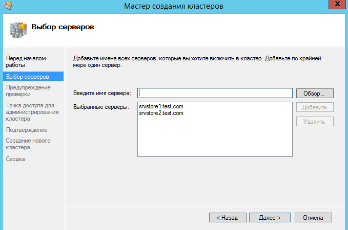 Добавляем сервера (узлы кластера)