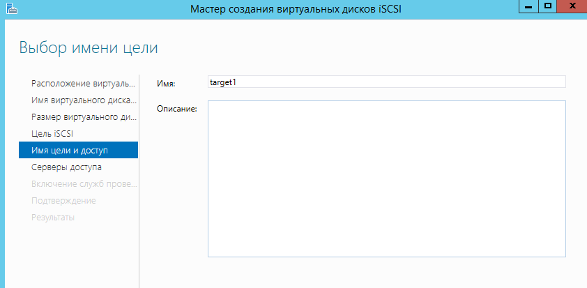 Далее вводим название цели ISCSI.