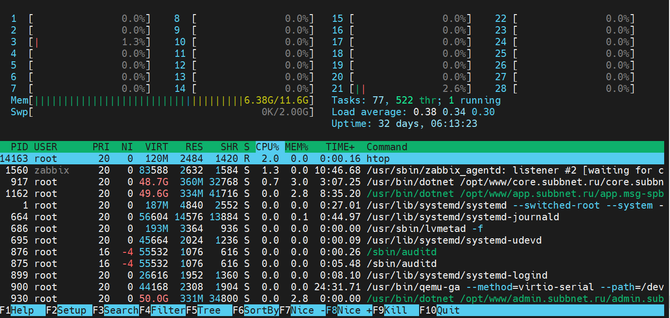 htop - удобный диспетчер задач в реальном времени с нагрузкой, подсветкой, сортировкой, фильтрацией, завершением процессов