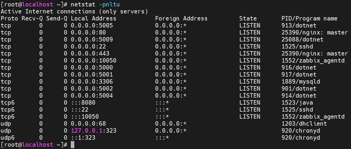 Список tcp соединений. Это то же самое, что было в прошлой команде, но мне вывод больше нравится. Более наглядный, если смотреть его весь.