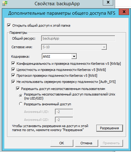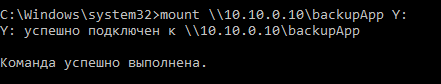 Смонтировать NFS каталог в Windows можно с помощью команды mount. Например, смонтируем NFS каталог и назначим ему букву диска Z:. Предположим, что ваше NAS устройство находится в той же сети, что и ваш компьютер с установленной операционной системы Windows, а IP-адрес устройства — 10.10.0.10. С помощью следующей команды можно смонтировать общий ресурс NFS в \backupApp.