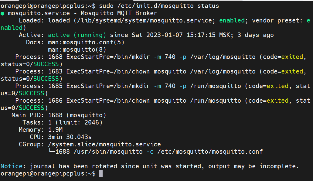 Теперь необходимо перезапустить MQTT сервер, для этого вводим в консоли: