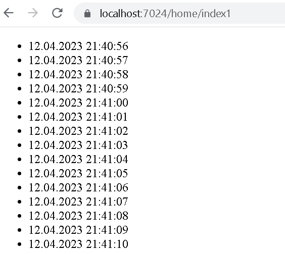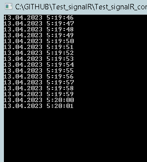 }В созданном нами классе мы определяем метод для использования данных, которые сервер делает доступными в режиме реального времени. Для этого мы создаем соединение с концентратором, передавая URL-адрес нашего сервера, который возвращает список дат и отображает его в терминал.