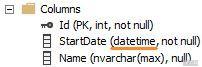 Чтобы создать в базе колонку с типом DateTime нужно в C# классе написать :