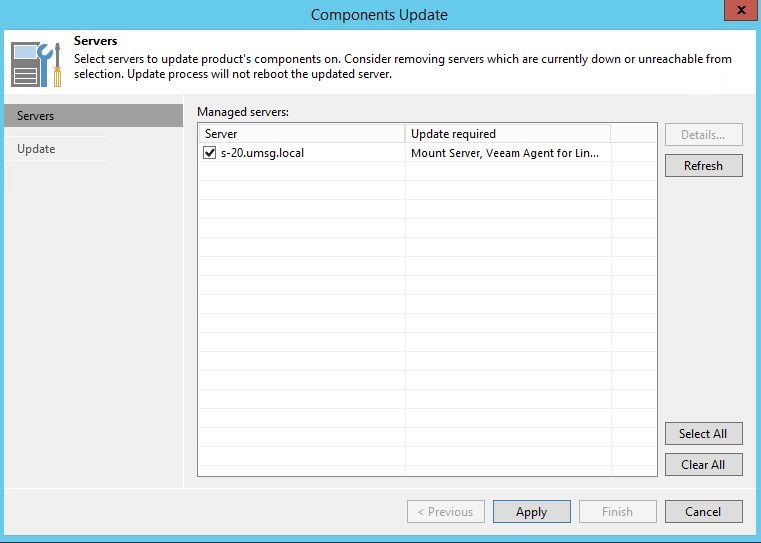 При первом запуски консоли Veeam Backup & Replication будет отображено диалоговое окно с первоначальной инициализацией компонентов системы. Поскольку сервер у меня один, то я выбираю его и подтверждаю внесение изменений.