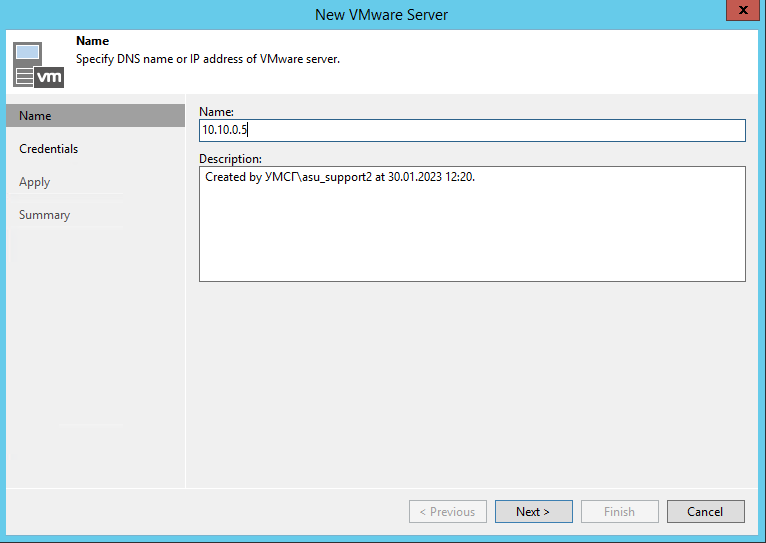 Подключение сервера VMware