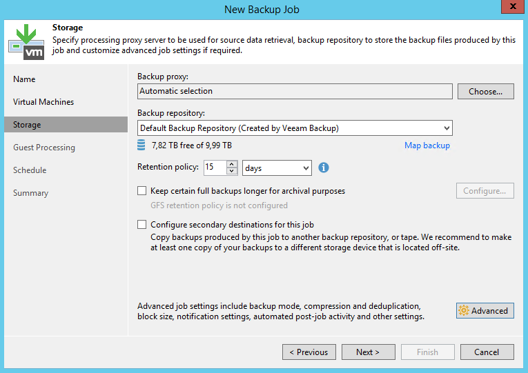 - Устройства хранения, подключенные на прямую. Например, диски подключенные непосредственно к серверу или iSCSI диски подключенные в гостевой ОС сервера Veeam.