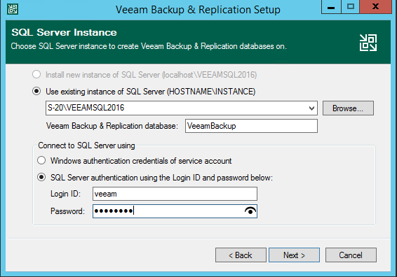 Сервер у нас будет один и он будет использовать для хранения своих конфигурационных данных экземпляр SQL Server Express. Сервер SQL будет установлен на той же ВМ, что и сервер приложения Veeam.