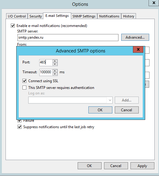 Veeam Backup & Replication может отправлять вам на электронную почту статус завершения заданий резервного копирования (всех или только неудачных, на ваш выбор). Для настройки почтовых уведомлений перейдите на страницу основных настроек: