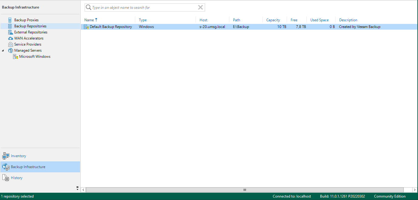 Это не совсем то, что нам нужно. Veeam Backup & Replication Community поддерживает следующие типы репозиториев: