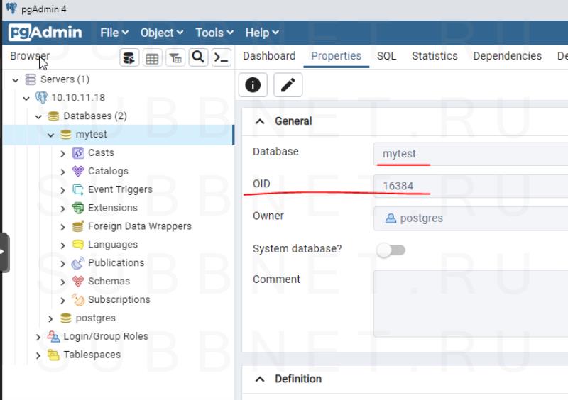 Откройте pgAdmin и перейдите в "Свойства" для конкретной базы данных. Найдите OID, а затем откройте каталог