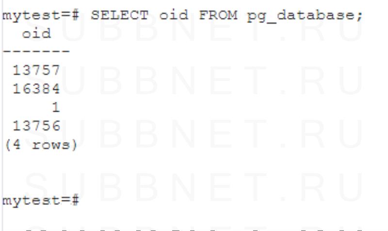 SELECT oid FROM pg_database;