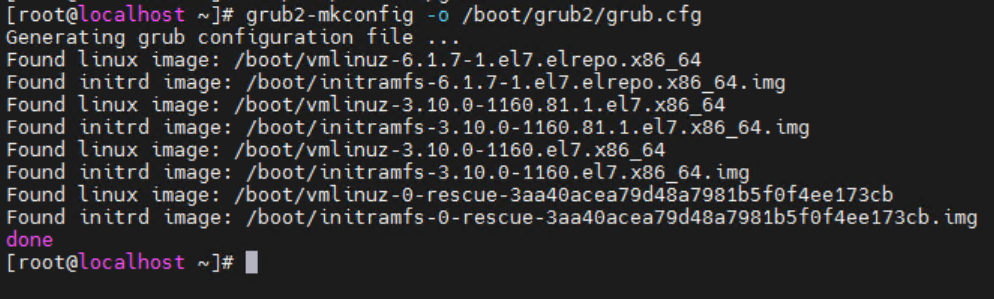 grub2-mkconfig -o /boot/grub2/grub.cfg