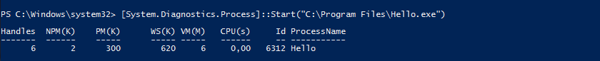 [System.Diagnostics.Process]::Start(′C:\Program Files\Hello.exe′)