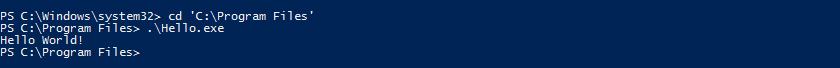 Set-Location ″C:\Program Files″ .\Hello.exe