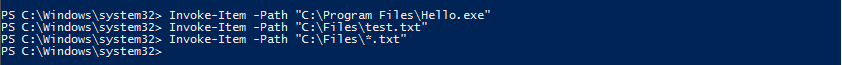 Invoke-Item -Path ″C:\Files\*.txt″