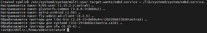 При установке пакета fly-admin-ad-client будет автоматически установлен инструмент командной строки astra-winbind.