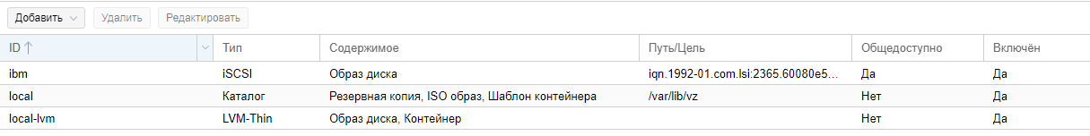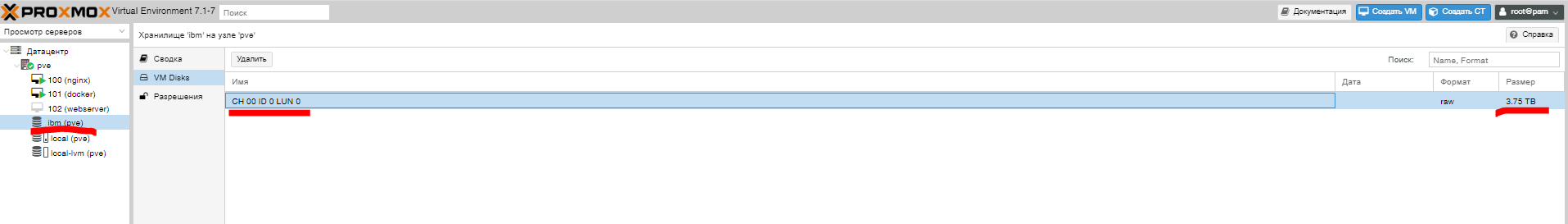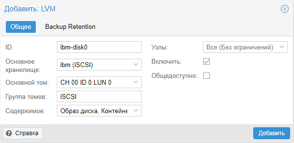 - Общий ресурс iSCSI теперь добавлен в Proxmox