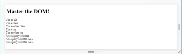 document.querySelectorAll();Чтобы получить доступ к одному элементу, мы используем метод querySelector(). Попробуем получить доступ к следующему элементу:
