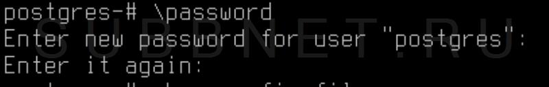 postgres=# \passwordи вводим новый пароль.