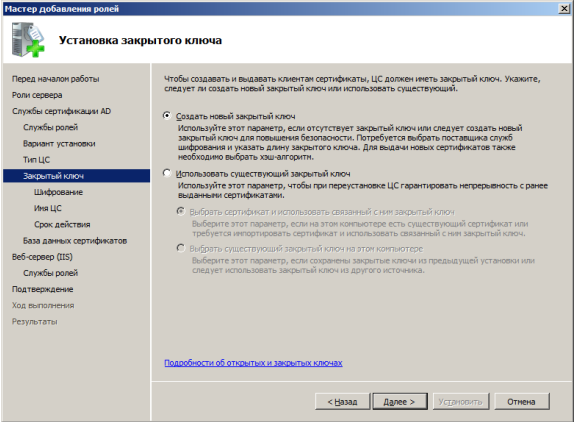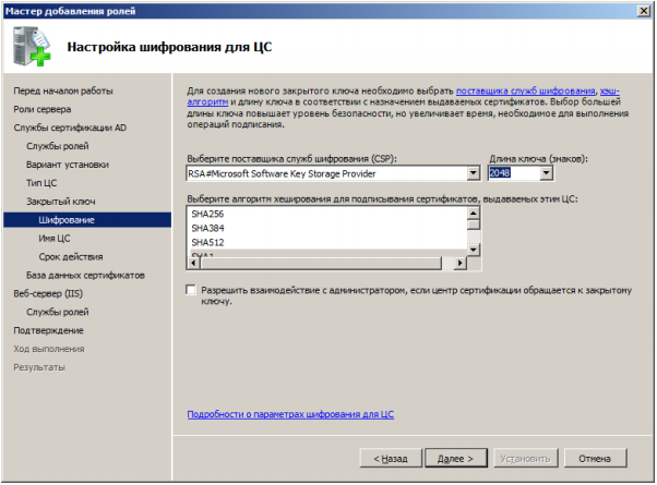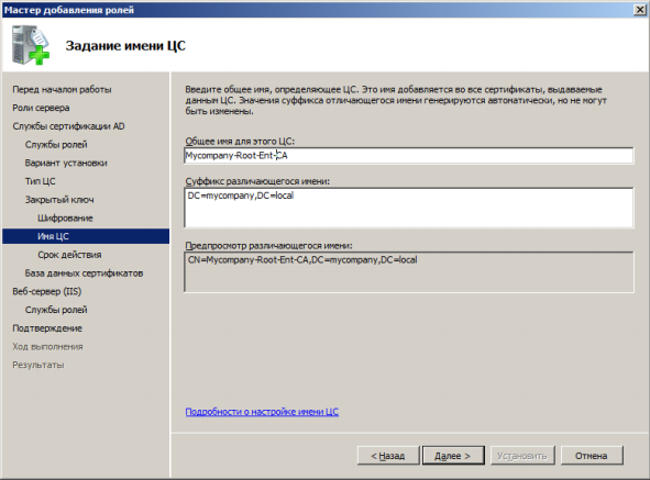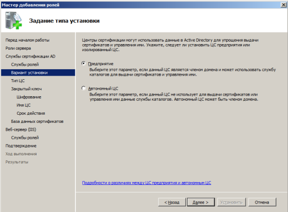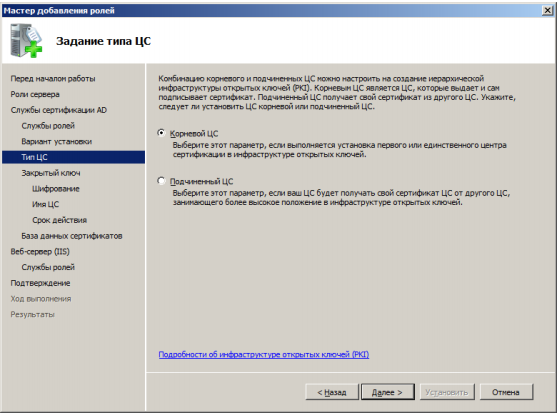 На следующем шаге установки выбираем нужны пункт смотря какой ЦС устанавливаем: