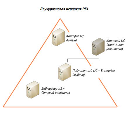 Первоначально спроектируем инфраструктуру PKI. При планировании необходимо определить количество и иерархию Центров Сертификации.