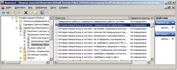 Через GPO настроим интерактивный вход для пользователей. Включаем параметр «Интерактивный вход в систему: Требовать смарт-карту» и «Интерактивный вход в систему: Поведение при извлечении смарт-карты».