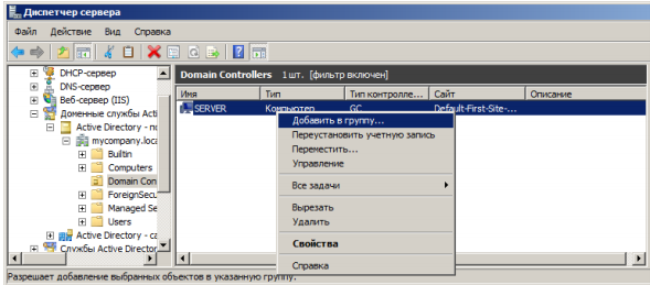 Добавим все контролеры домена в группу безопасности Certificate Service DCOM Access. Это необходимо для того чтобы была возможность запрашивать сертификат пользователя.