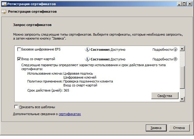 А теперь сделаем запрос пользовательского сертификата на смарт-карту.