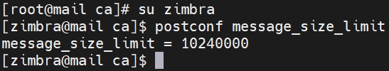 По-умолчанию в Zimbra размер письма максимум 10Мб. При попытке добавить вложение размером чуть менее 10Мб сервер выдает ошибку о максимально допустимом размере вложения. Это связано с тем, что письмо перекодируется в base-64, размер соответственно увеличивается. Изменим максимальный размер письма до 30Мб: