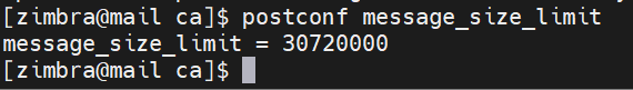 zmprov mcf zimbraMtaMaxMessageSize 30720000Перечитываем настройки