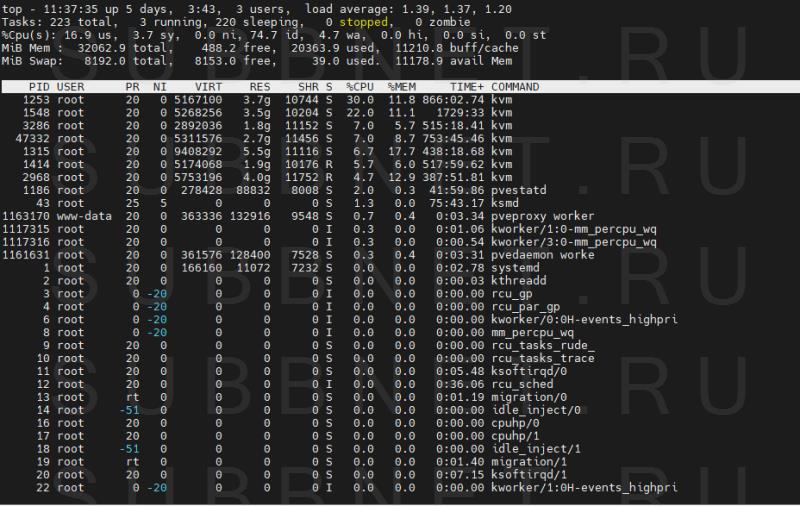 - st: сколько процентов было "украдено" виртуальной машиной - в случае, если гипервизору понадобилось увеличить собственные ресурсы