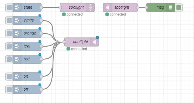 {"topic":"zigbee2mqtt/spotlight1","payload":"{\"state\":\"ON\",\"linkquality\":78,\"brightness\":254,\"color\":{\"x\":0.6173,\"y\":0.3694},\"color_temp\":155}","qos":0,"retain":false,"_msgid":"9de88d8c.894a5"}Если вы хотите управлять устройством ZigBee, просто отправьте сообщение JSON: