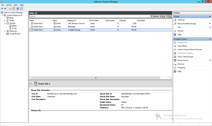 Более подробно о подготовке и установке кластера Windows Server 2012R2. Перед дальнейшем прочтением и использованием материала настоятельно рекомендуется ознакомится с указанной статьей и иметь настроенный кластер.
