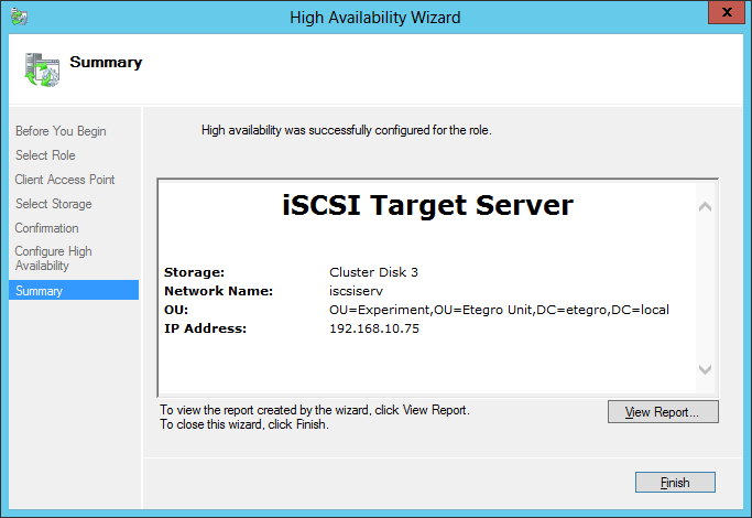 В данном обзоре рассматривается конфигурация iSCSI Target в Windows Server 2012. Настройку будем производить на отказоустойчивом кластере (Failover Cluster) на базе сервера ETegro Hyperion RS420 G4.
