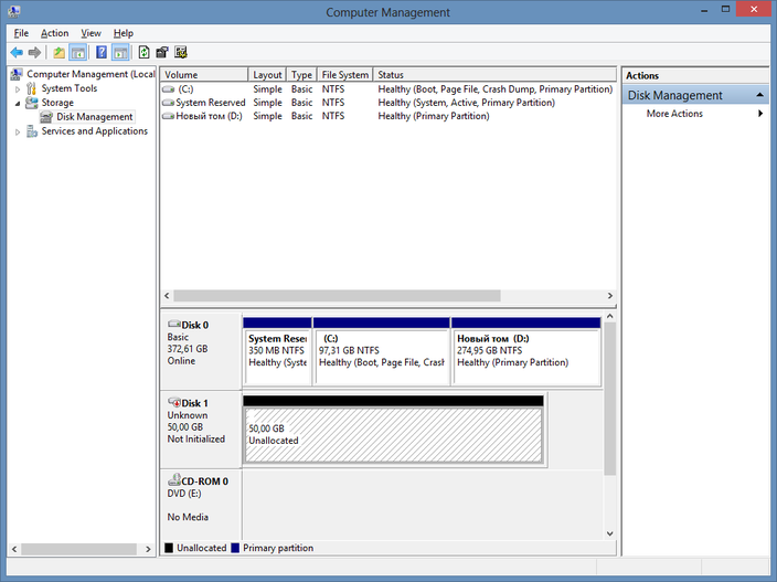 В результате этих настроек подключается новый диск, который необходимо инициализировать и отформатировать.