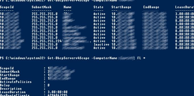 Get-DhcpServerv4Scope –ComputerName msk-dhcp1| FL *