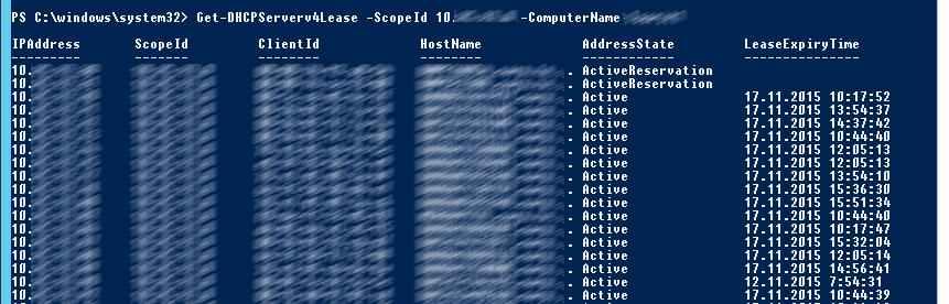 Get-DHCPServerv4Lease -ScopeId 10.25.4.0 -ComputerName msk-dhcp1
