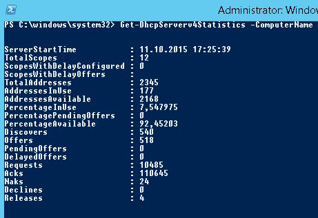 Get-DhcpServerv4Statistics -ComputerName msk-dhcp1: