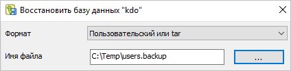 Если резервная копия делалась для определенной базы, запускаем восстановление: