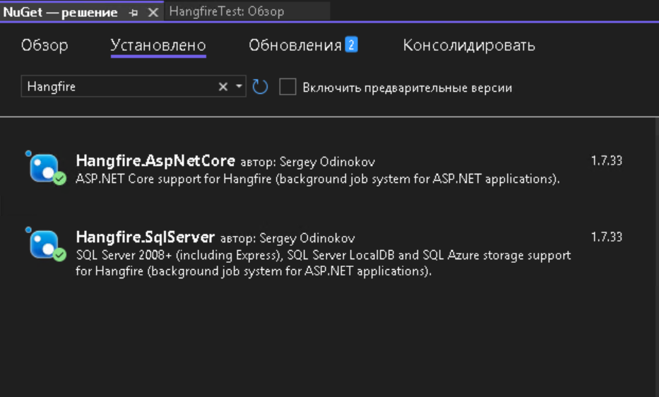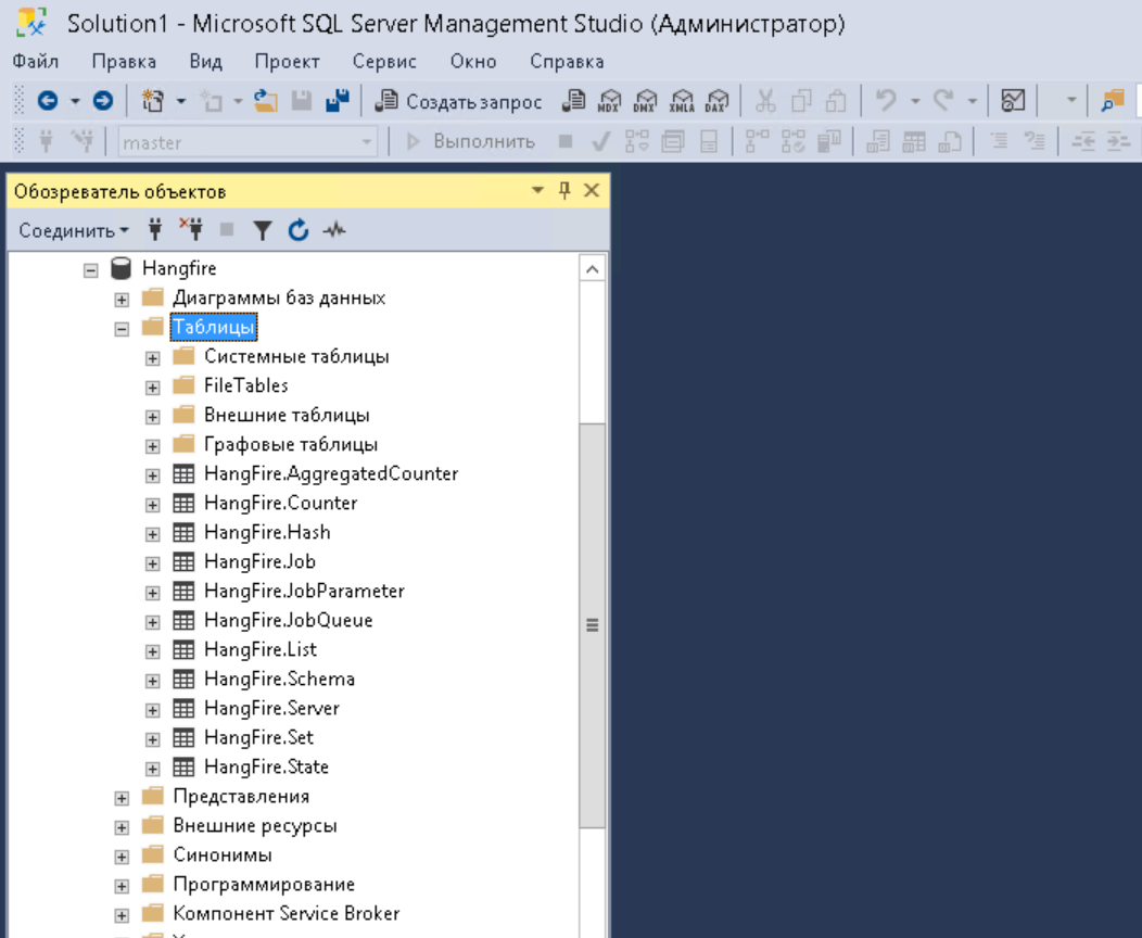 Кроме того, он создаст таблицы в базе данных Hangfire, связанные с управлением заданиями Hangfire.