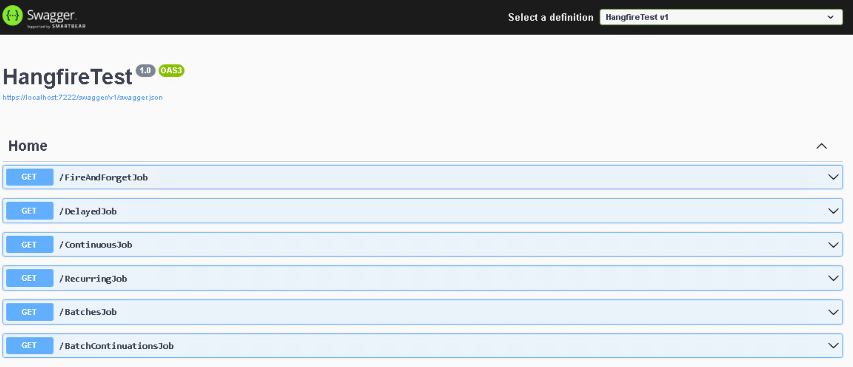 В HomeController нашего API мы использовали классы Hangfire для вызова различных заданий, таких как BackgroundJob и RecurringJob.